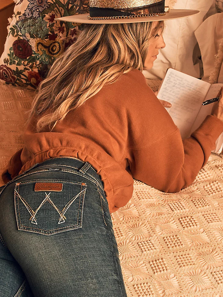 Mae places a contemporary twist on our cowgirl cool aesthetic. All Wrangler® jeans for women are designed to accentuate your best assets, but our women's Retro® jeans go above and beyond. Wrangler® Retro® jeans pay tribute to our Western heritage with the iconic details you know and love, including the leather patch and authentic W stitching on the back pockets. Plus, these women's bootcut jeans come with a figure-flattering, mid-rise fit that's truly versatile. With a variety of washes to choose from, you can easily make this throwback jean an everyday staple.