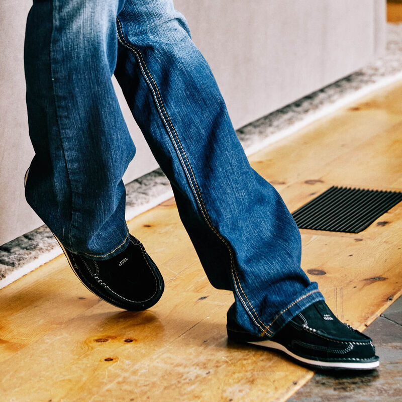 Ariat's Famous Slip On Cruiser in Black Suede. These are the most comfortable shoes, I wear them all day long on concrete floors and always feel good at the end of day.