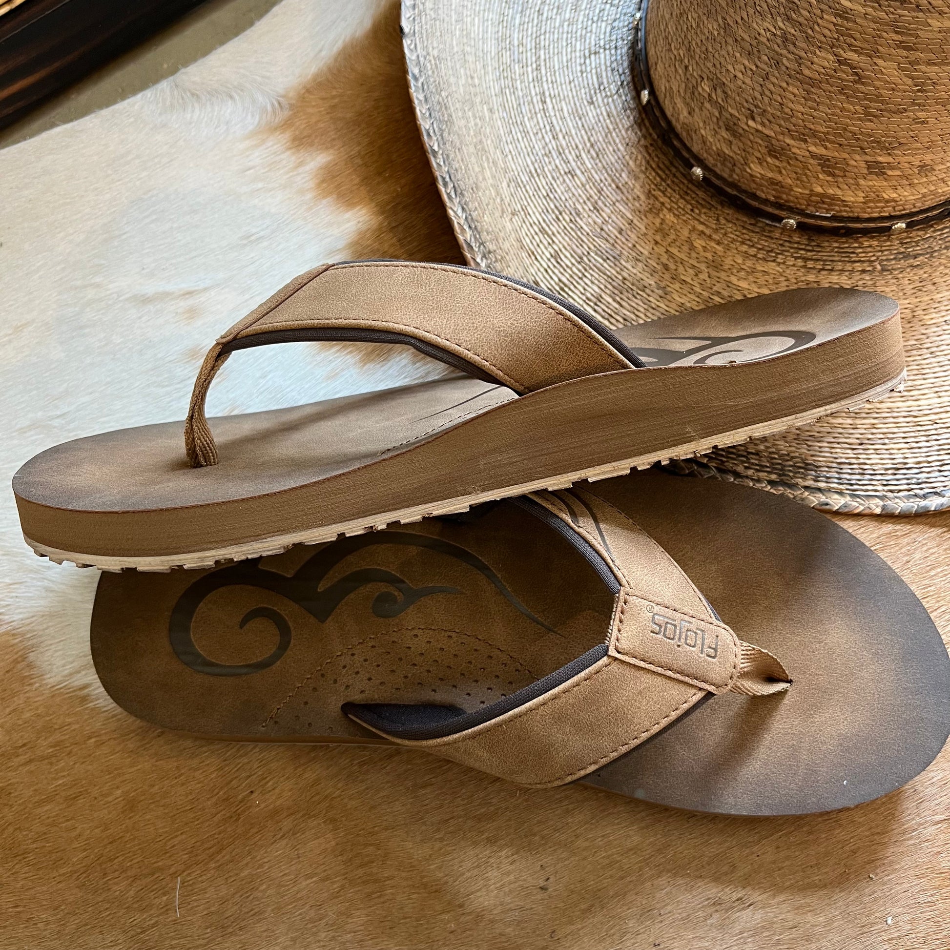 Step into comfort and style with the Cuero - the perfect addition to your summer wardrobe! The burnished faux suede strap with exposed fabric liner adds a touch of sophistication to these sandals, while the debossed tribal print on the upper and footbed adds a pop of fun and excitement.With a nylon toepost underlay, these sandals are designed to provide a comfortable and secure fit, while the TPR outsole ensures excellent grip and durability. And with the burnished logo on the EVA midsole, you can be sure that you're getting the highest quality in both design and construction.Whether you're lounging by the pool or out for a casual stroll, these sandals are the perfect choice for any occasion. So why wait? Treat your feet to the ultimate in comfort and style with the Cuero!
