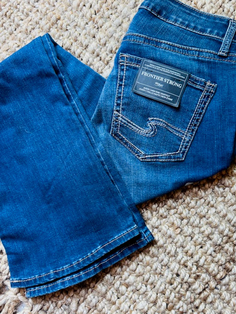 Classy with a touch of Western Flare! These Dark Wash High Rise Bootcut Silver Brand Jeans will be your Go To pair of Denim. Dark wash & un distressed, you can wear them to casual work days, nights out or running around town.