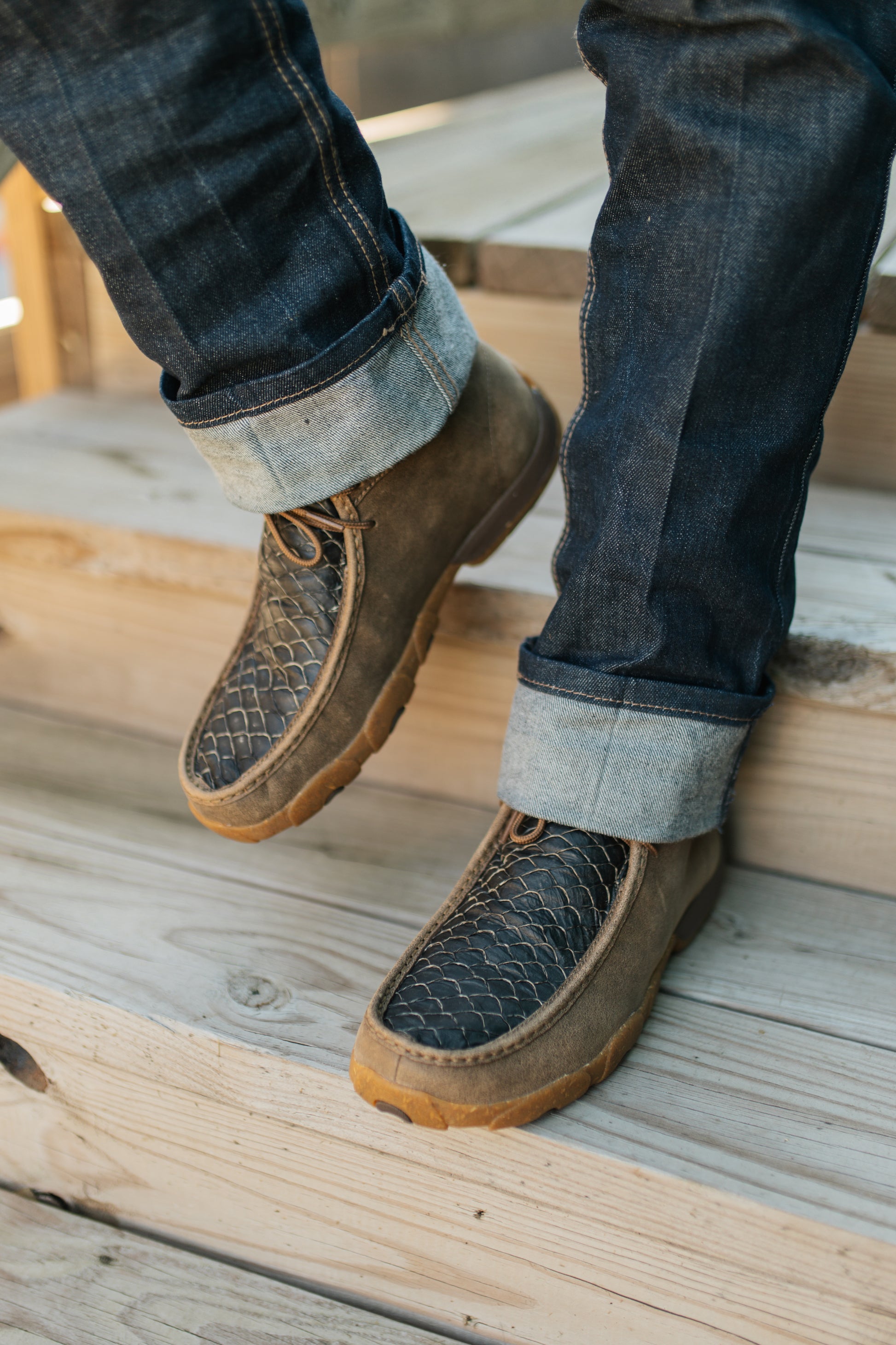 Leather upper featuring fish leather on vamp