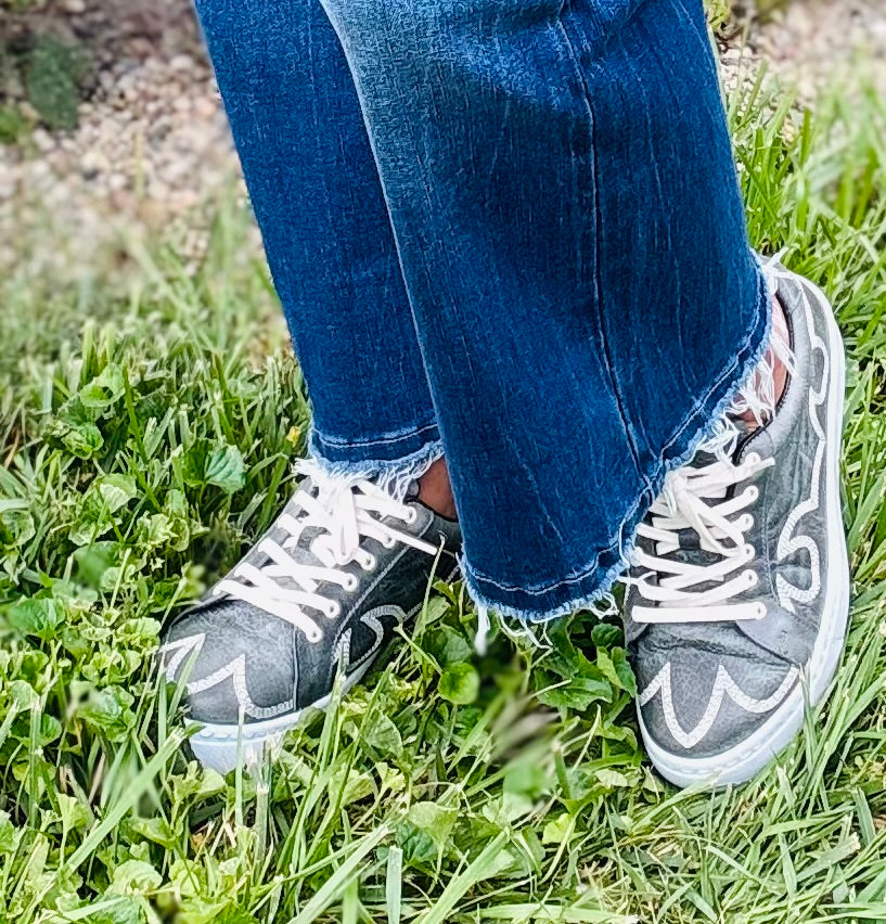 How Stinkin' Cute are These ?!?! Casual Tennis shoes with a Western Flare. They pair perfect with Jeans or shorts.