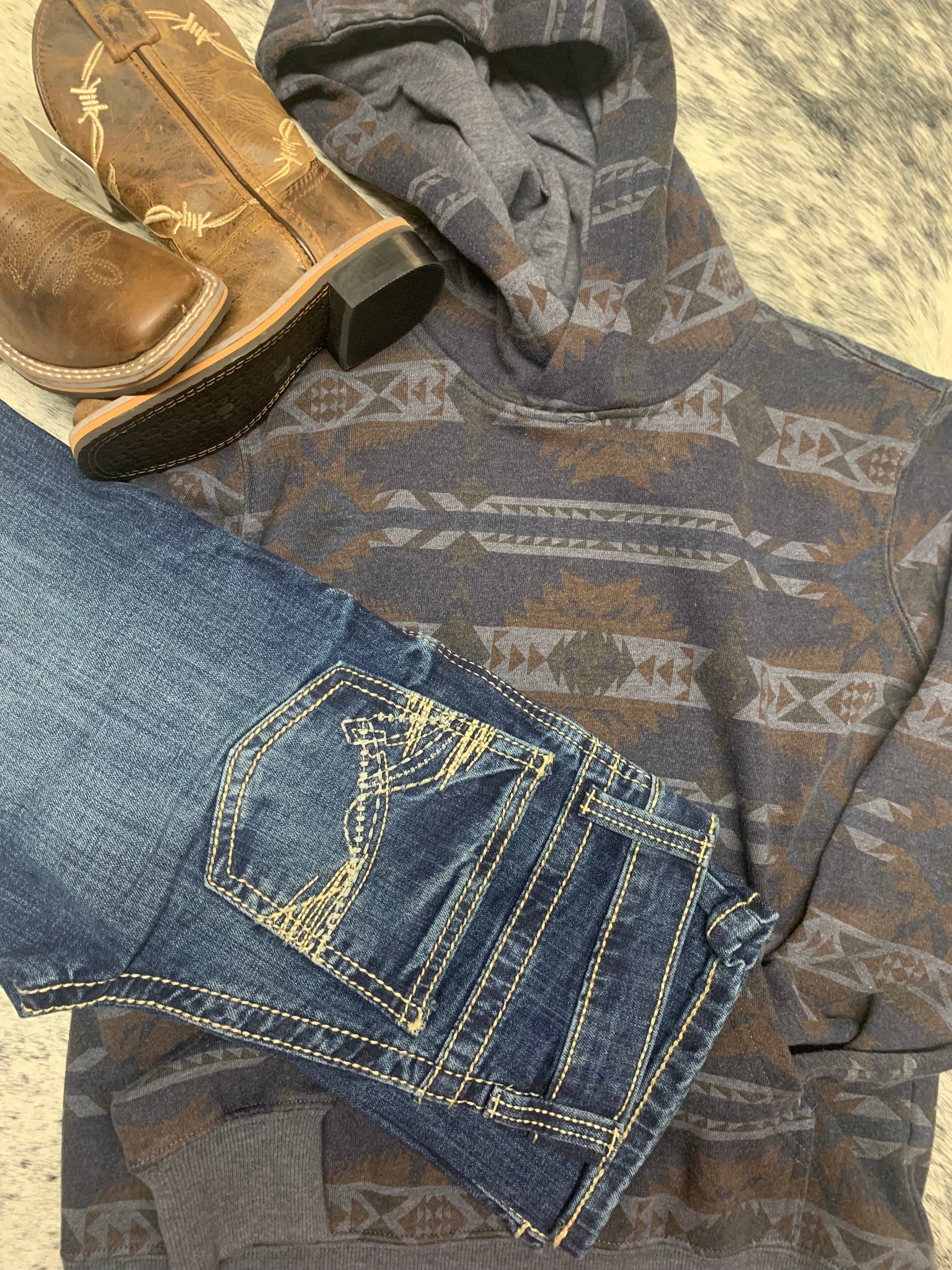 Ariat Blue Southwest printed over dyed washed sweatshirt