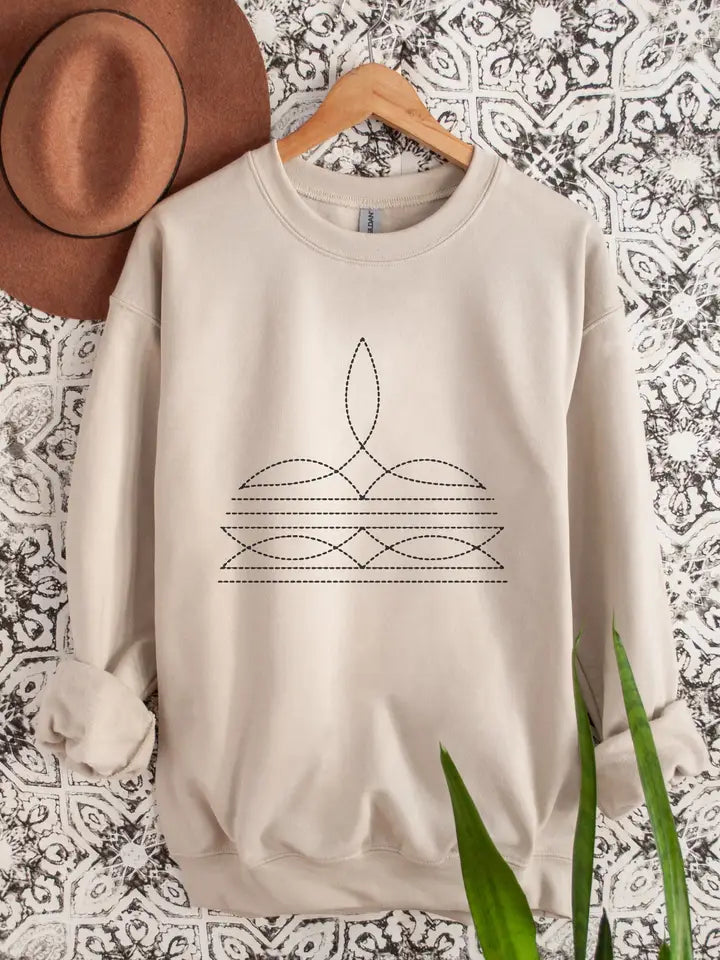 A Sand Colored 50 cotton 50 poly blend Crewneck Sweatshirt with our Sassy and Classy Boot Stitch Pattern.