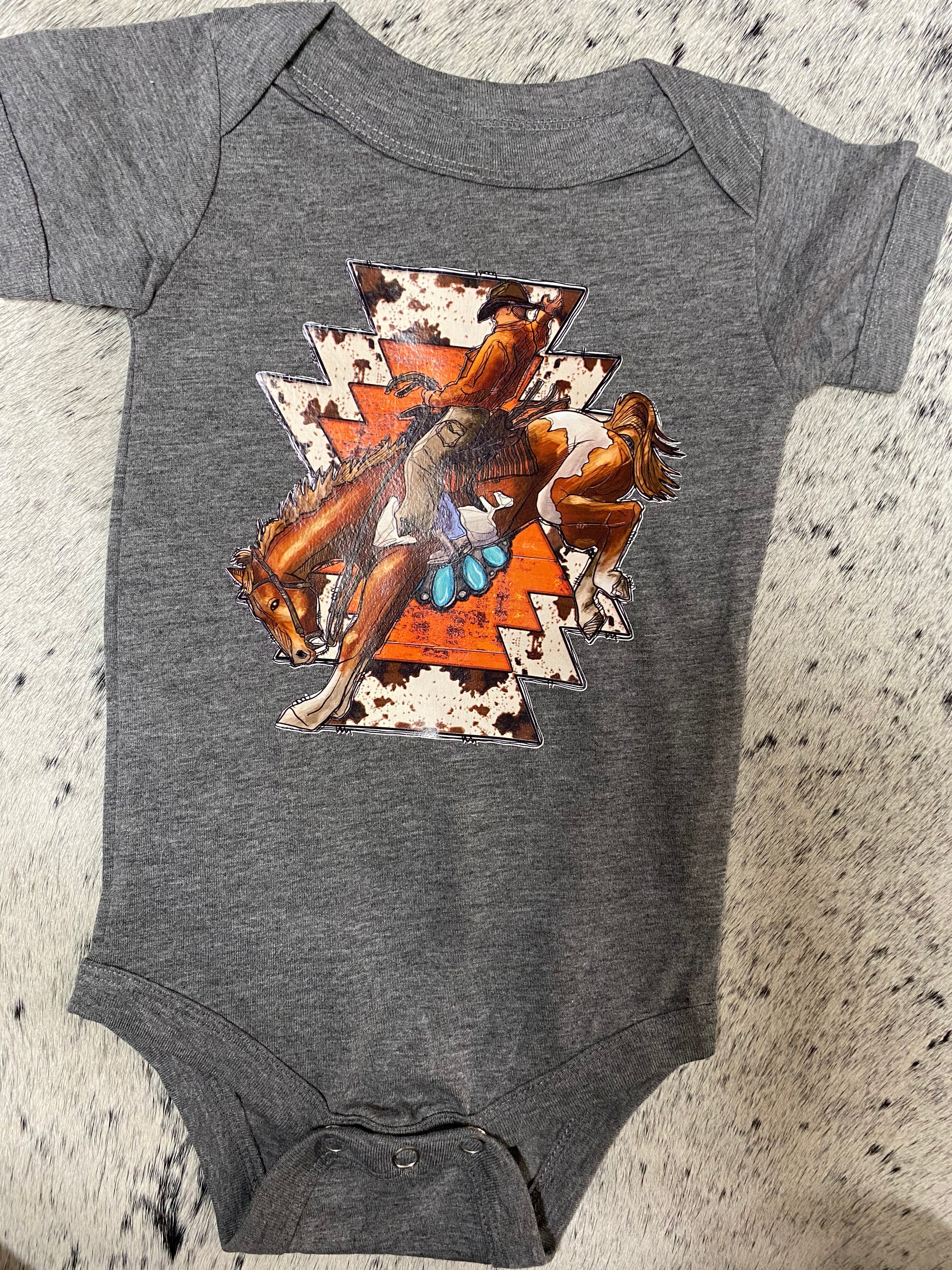 On sale in store only $7.50... Bronc Riding Cowboy on a Grey Onesie