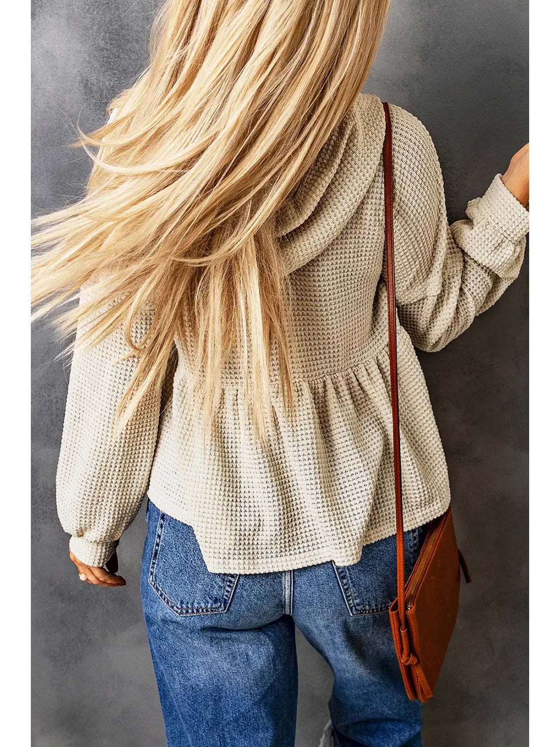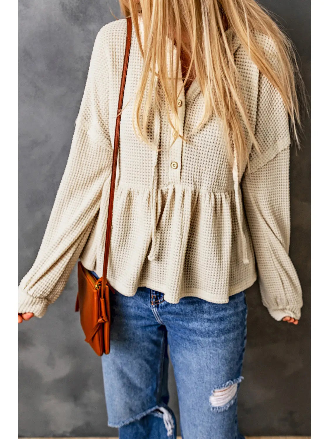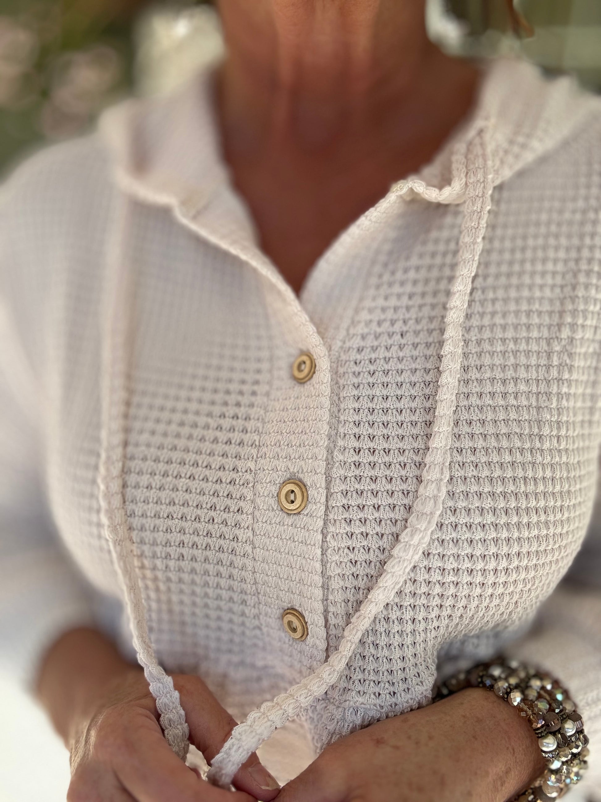 WAFFLE KNIT 3/4 BUTTON DOWN & HOODED