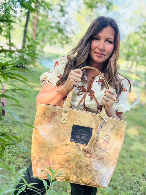 A Beautiful Genuine Leather Tote/Bag/Purse by Corral Boots. Makes a nice everyday tote, diaper bag an overnight bag OR, if you're that girl that needs a big purse this one give you lots of room.