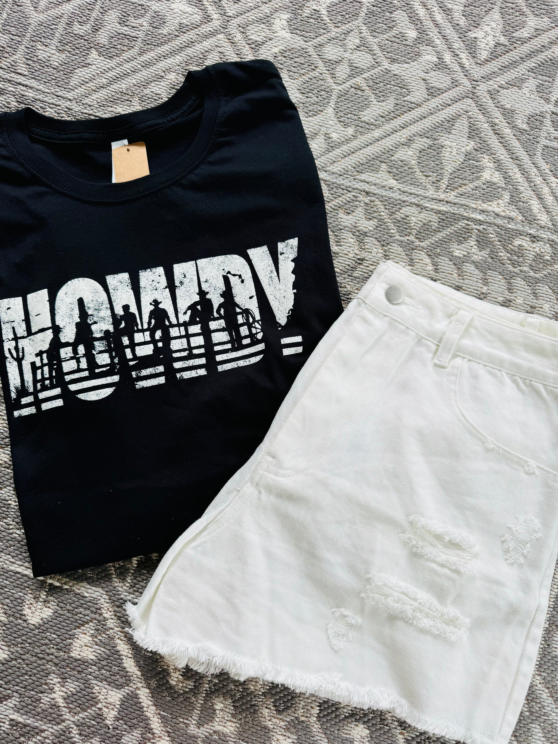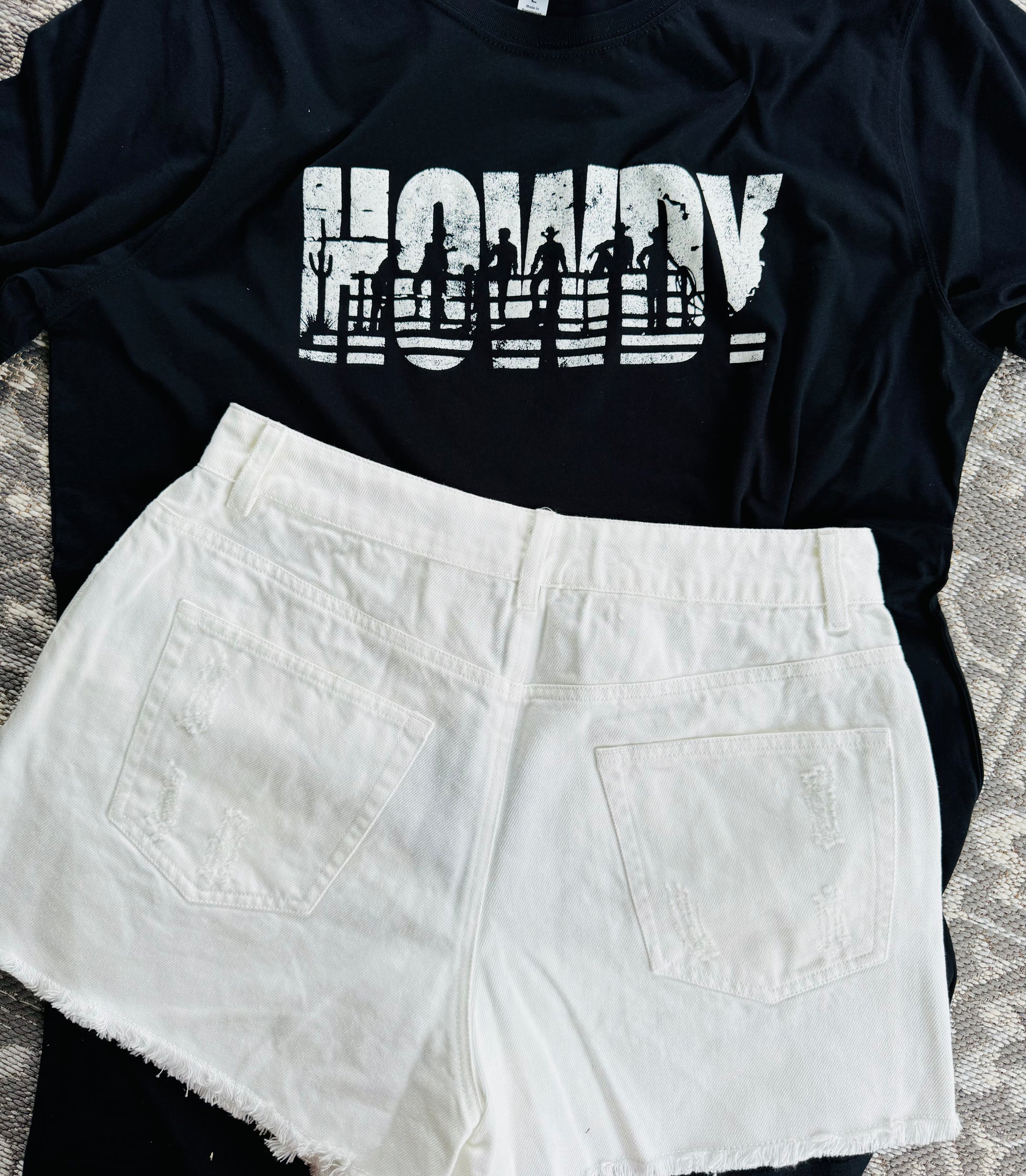 White Denim Frayed Hem Shorts. Perfect for a casual summer day or dress them up with a blouse for a more formal look.