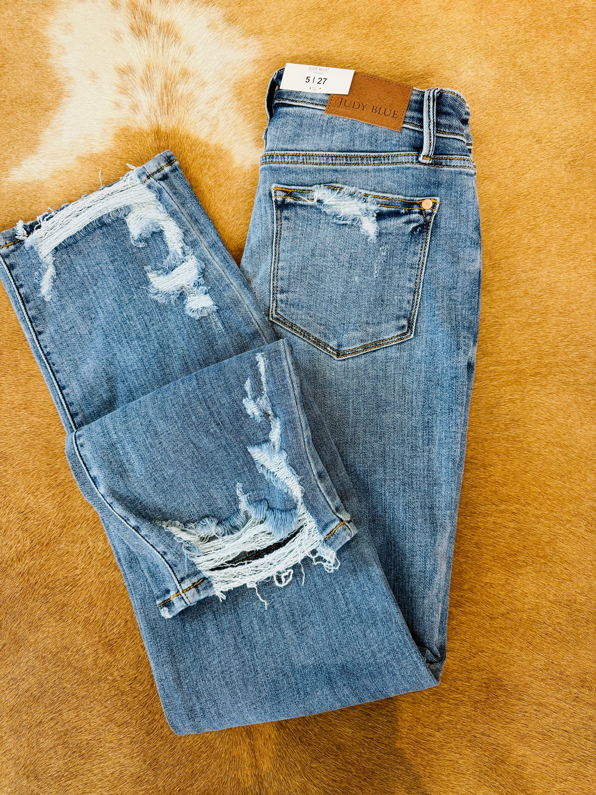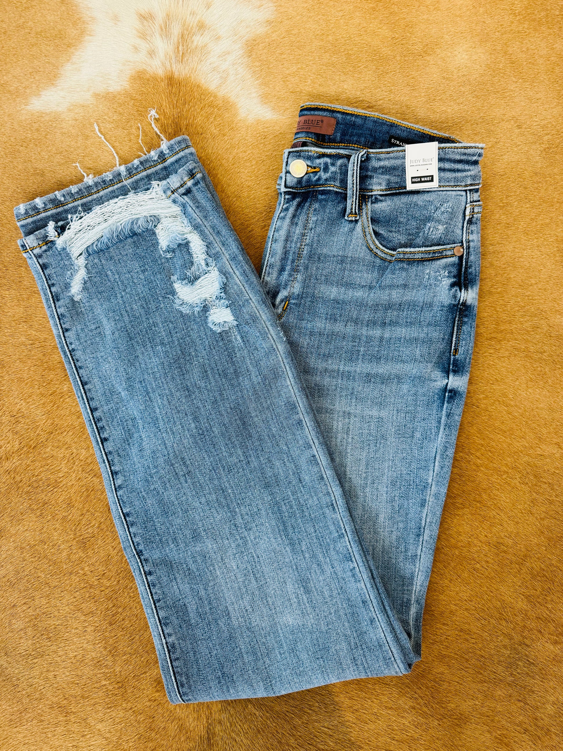 Judy Blue has done it again! A relaxed high waist straight leg jean that is soft and comfortable to wear. A light to med wash with some distressing on the bottom of the leg and a little on the back pockets that is perfect for Spring and Summer