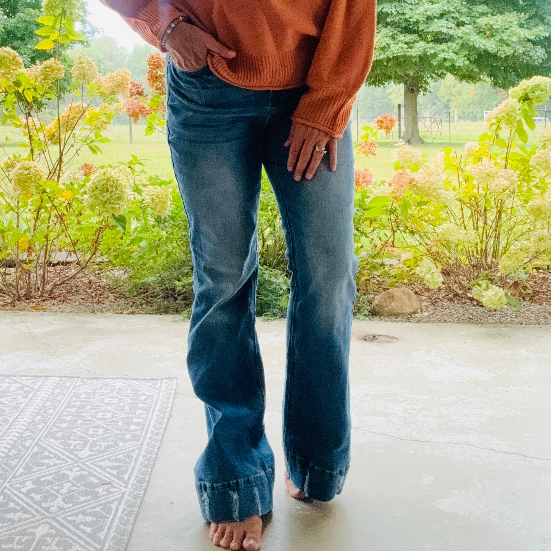 Sky Blue Slight Distressed Washed Flare Jeans...High Rise