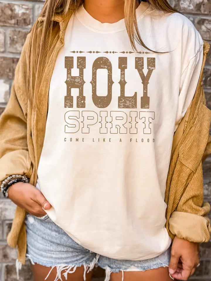 "Holy Spirit Come Like a Flood" This Ivory Comfort Color t-shirt is so comfy! Featuring a crew neck, short sleeve tee. This will be a shirt that you will love from the moment you put it on. Wear it alone and layer with your favorite flannel when its cooler... All Year Wear