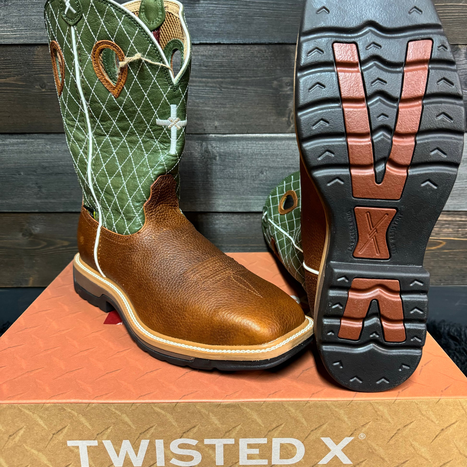 This Men's 12" Steel Toe Lite Western Work Boot with MetGuard™ is handcrafted in traditional western boot profiles with signature full-grain leathers for a classic look. On the inside, they utilize air-mesh lining, taped seams, and a Twisted X® molded footbed for additional comfort. These comfort features are paired with a double-stitched storm welt, full-length composite insole, a lightweight full-length compression-molded EVA midsole, and an oil/slip-resistant molded-rubber outsole to produce an industry leading work boot. Twisted X® Western Work Boots provide all the comfort and durability that you need to outperform any demanding work environment.
