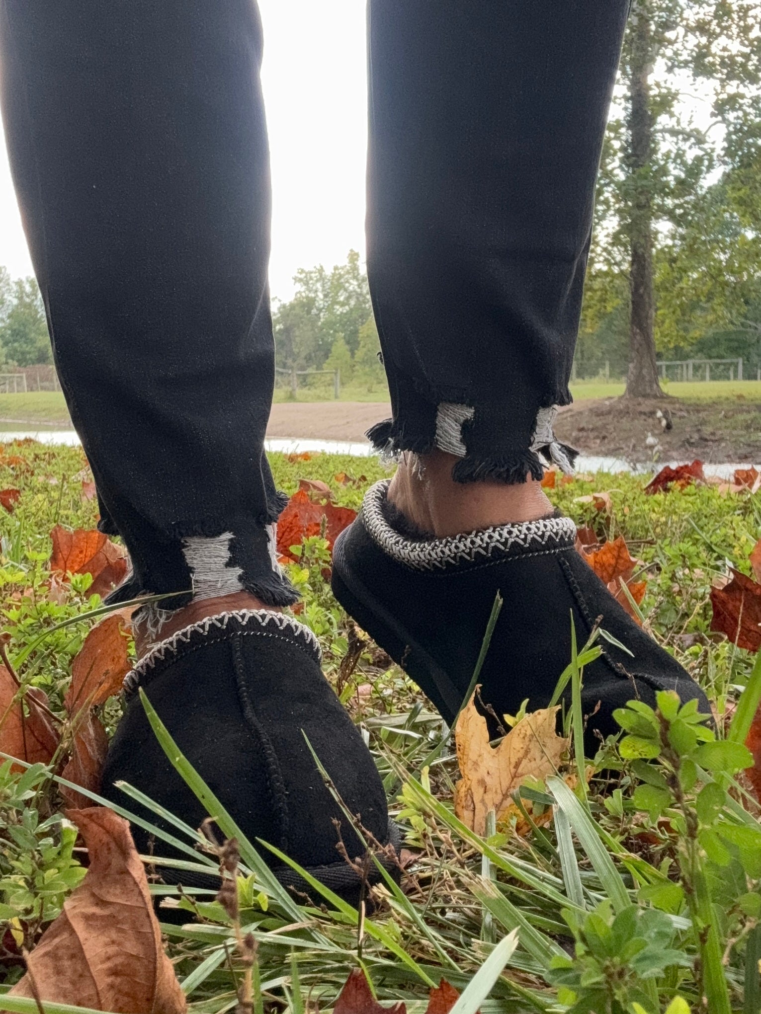 A Warm and Cozy Lined Slipper or Everyday Casual Slip On Shoe in Black. Trendy Ugg Style