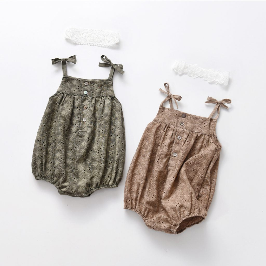 baby girl solid green and brown strapped onesie, Great onesie for spring and summer. floral print with tie straps.