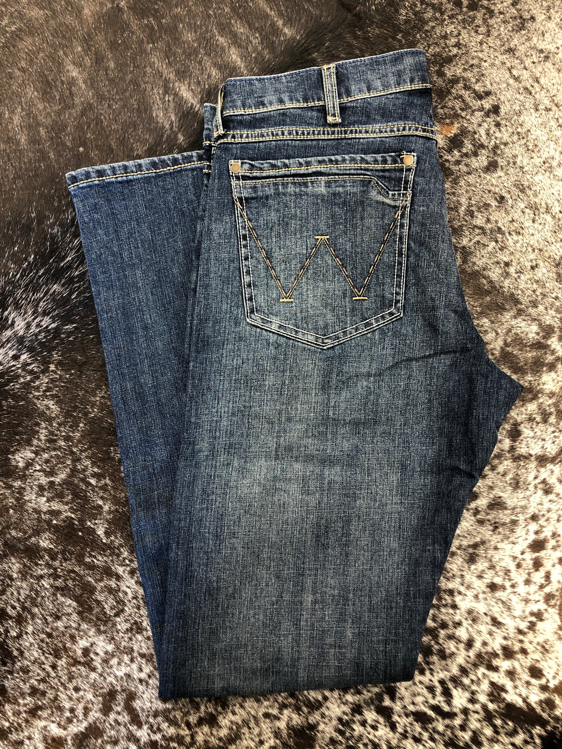 Since 1947, Wrangler® jeans have been a cowboy-approved wardrobe staple. Inspired by our Western heritage, these Wrangler® Retro® jeans combine our most iconic features with contemporary fits and washes. This updated classic features the same worn leather patch with our rope logo, 'W' stitching on the back pockets, and five-pocket styling. These men's slim bootcut jeans feature a streamlined silhouette through the seat, thigh, and knee, but the leg widens from the knee downward, which is good news for boots. When it comes to finding the best bootcut jeans for men, your search ends here. Shop from a wide variety of sizes and washes to find the perfect addition to your everyday ensemble.