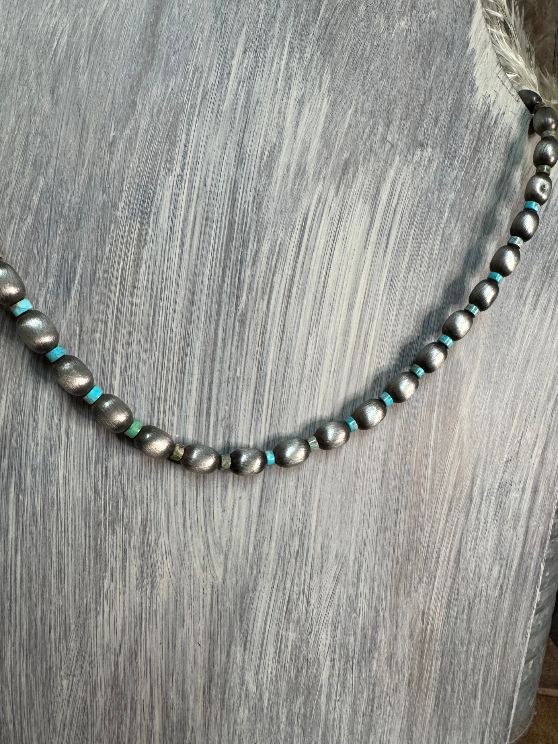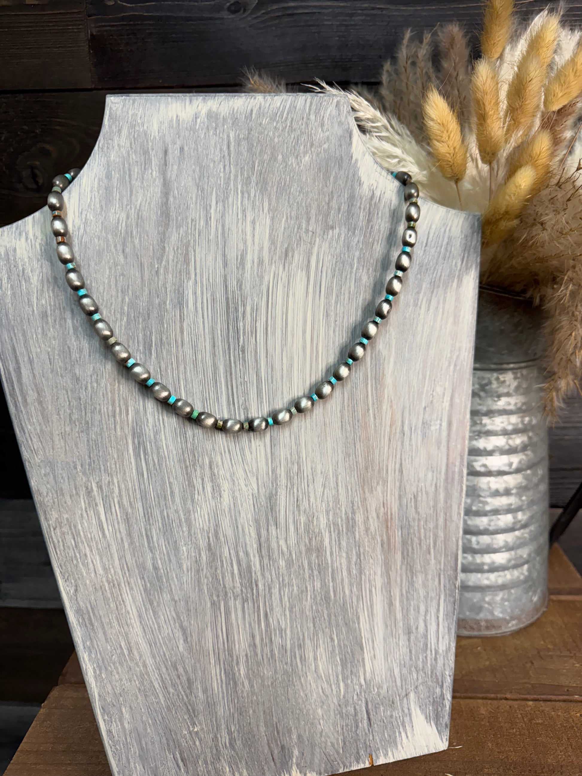 Another Pretty Short style necklace that is great alone or layered. The Navajo Pearls and stones give it an edgy vibe.